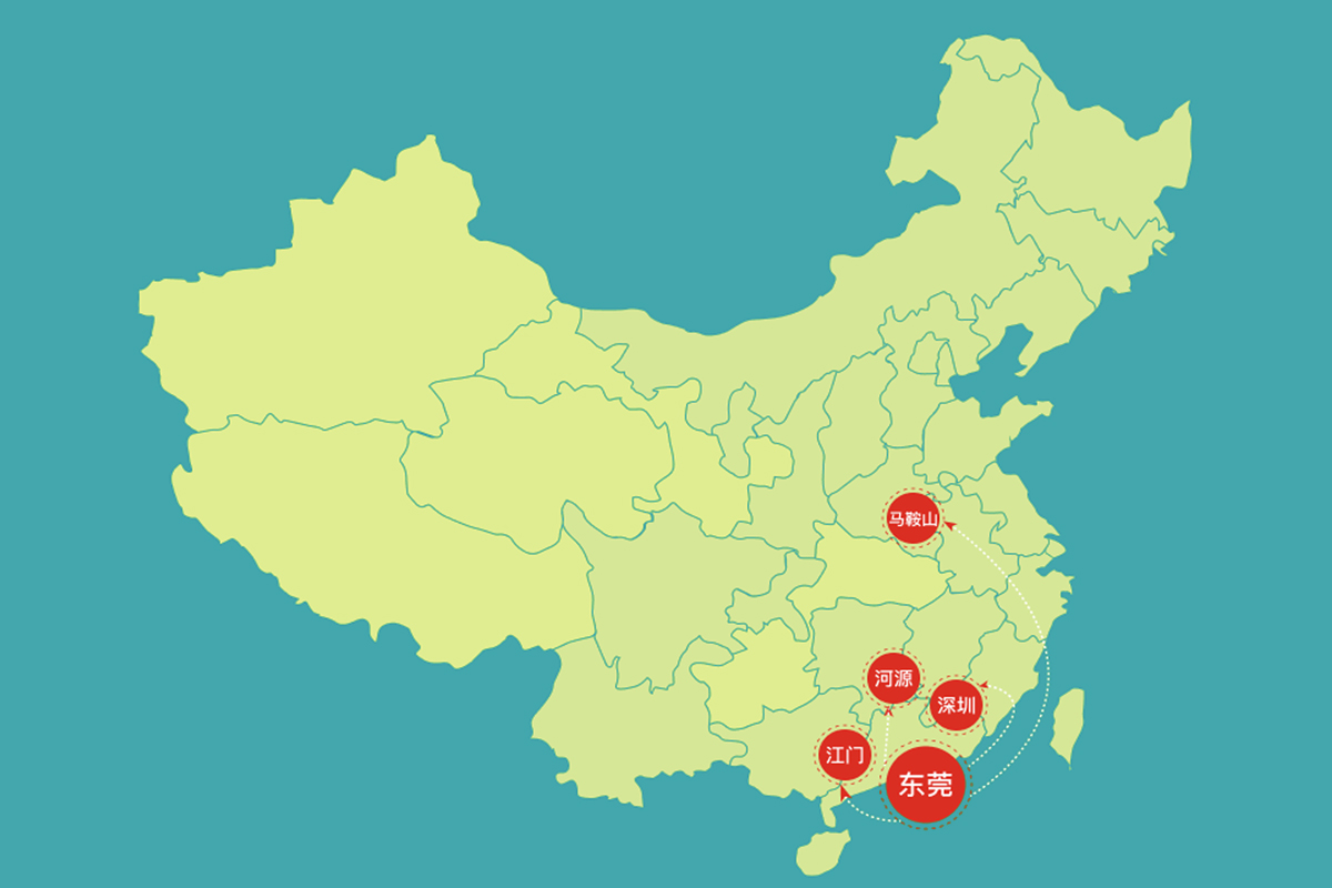 集團擁有東莞、江門、河源、深圳、馬鞍山等5個生產基地,公司的生產、倉庫、辦公及宿舍等占地面積超過200畝,從業人員達1000余人。